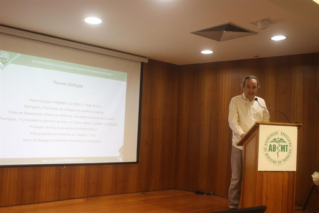 No dia 13 de dezembro de 2025 a Jornada teve abertura foram a mesa composta pela Dra. Karla Costa Kurtz representando a ABQV- Associação Brasileira de Qualidade de Vida, Dr. Jorge da Cunha Barbosa Leite da Cadeira de Otorrinolaringologia da UNIRIO, Dr. Carlos Alberto Araujo Chagas representando a ABMLPM – Associação Brasileira de Medicina Legal e Perícia Médica, Dr. Renato Battaglia Advogado, Professor das Pós-graduações em Cursos de Direitos Médicos e Diretor de Battaglia & Minchetti Sociedade de Advogados e Dr. Paulo Rebelo Presidente da ABMT® pronunciando as Boas Vindas aos participantes online e presenciais. Apresentou a Nova Diretoria da ABMT® e agradecimentos aos colegas que Participaram das Gestões do Dr. Gualter Nunes Maia.