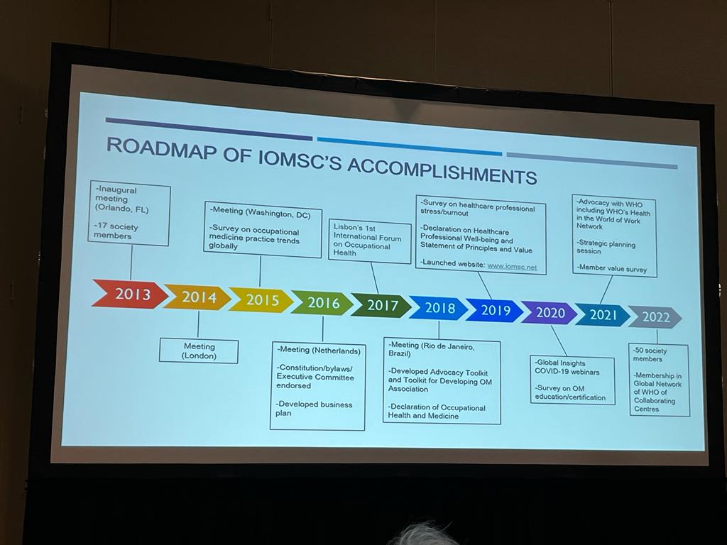 Na programação da Conferência, também foi realizada uma comemoração ao dez anos de fundação da Internacional Occupational Medicina Society Collaborative (IOMSC), entidade que é ABMT é sócia fundadora. Entre as realizações da IOMSC destacadas na ocasião, a participação na Conferência Pan-Americana de Saúde do Trabalhador e Ambiental, realizada pela Anamt em 2018.