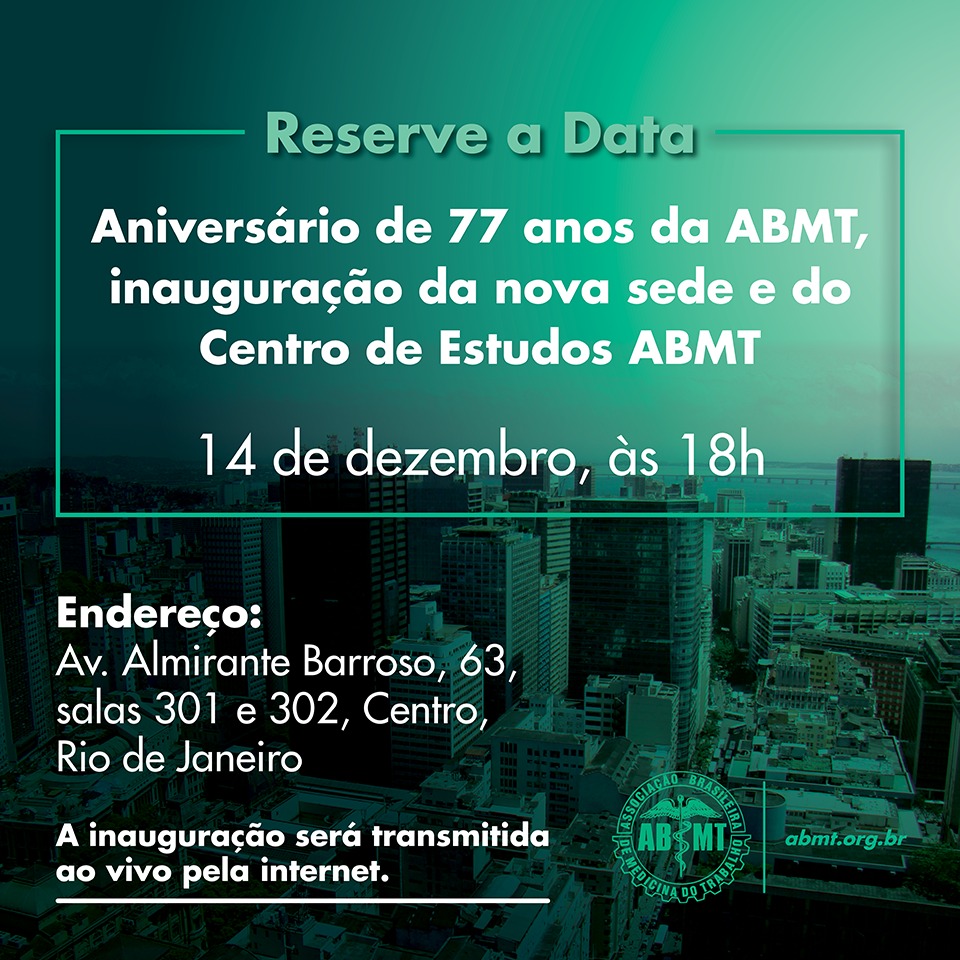 No dia 14 de dezembro, será inaugurada a nova sede da ABMT e o Centro de Estudos da entidade, além de ser comemorado os 77 anos da Associação.