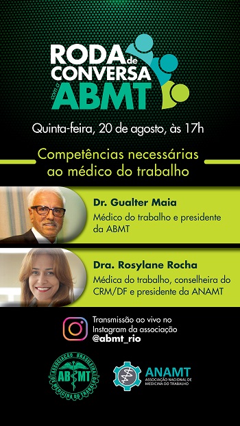 A Associação Brasileira de Medicina do Trabalho (ABMT) promove, em 20 de agosto às 17h, uma nova live da série Roda de Conversa com a ABMT.