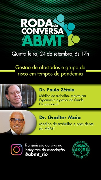 A Associação Brasileira de Medicina do Trabalho (ABMT) promove, em 24 de setembro às 17h, uma nova live da série Roda de Conversa com a ABMT.